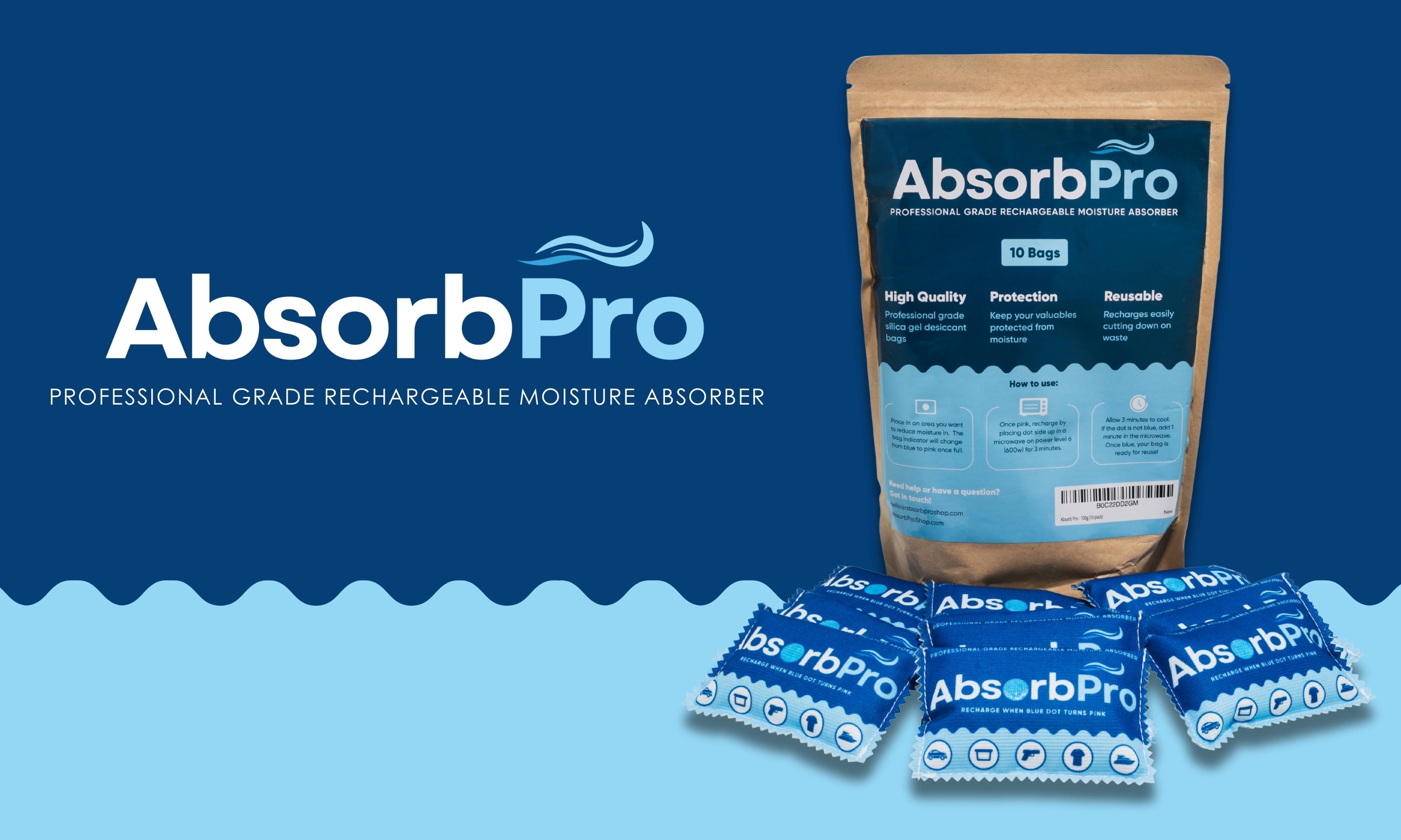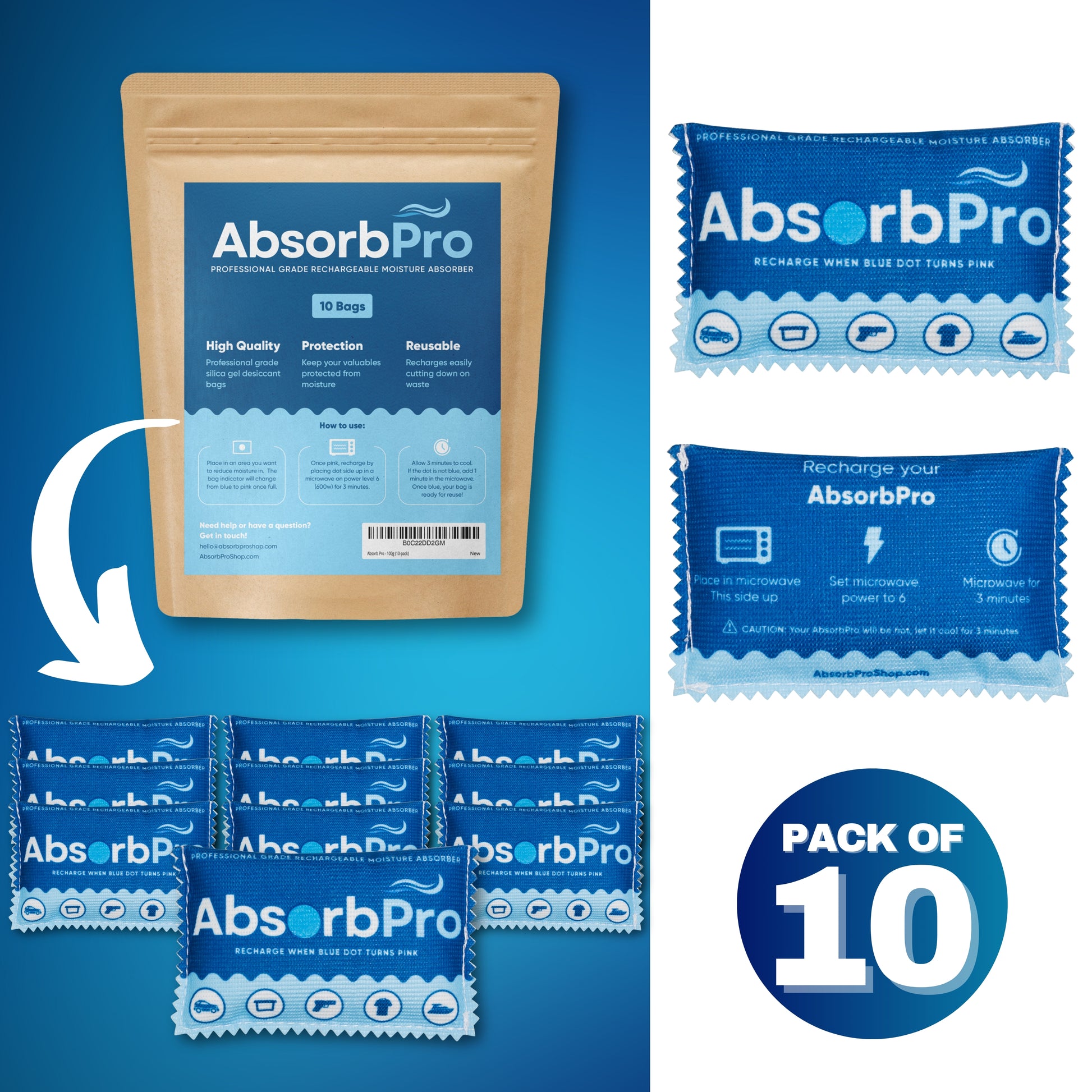 Absorb Pro - 100g Rechargeable Dehumidifier Bag 10-Pack